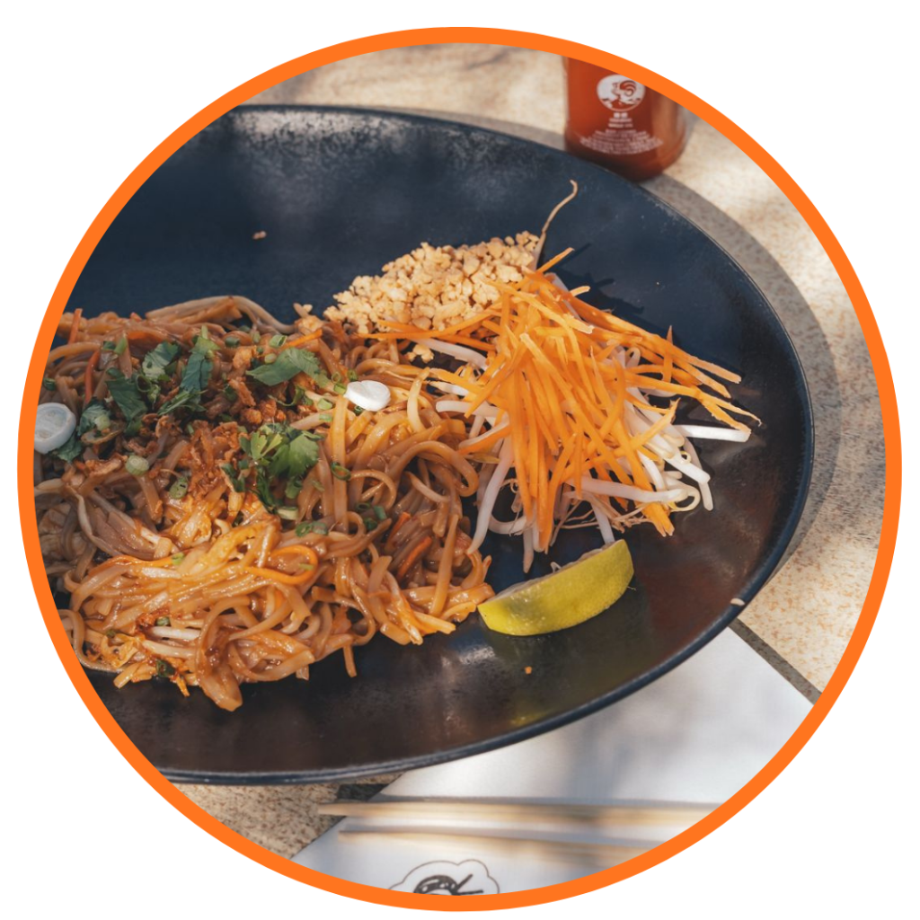 Nouilles sautées au wok à la sauce tamarin, poulet, petits légumes & cacahuètes - 17 €